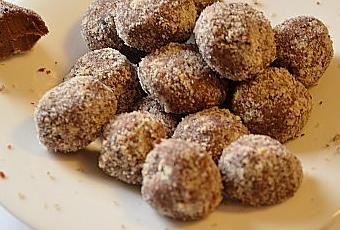 - A l'aide d'une cuillère, former des boules que l'on roule entre ses mains