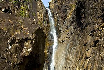 j'ai donc décidé d'aller voir une cascade. J'ai choisi la plus grande Klong Plu. Arrivé au guichet, je paie mes 200 THB d'entrée et demande une carte des lieux, le gardien grommelle qu'il n'en a pas et je me rends compte que je n'en tirerai aucun renseignement, c'est déjà bien qu'il ait interrompu sa sieste pour me vendre un ticket. Un chemin tortueux, qui monte et qui descend avec des panneaux sur les arbres avec leur nom latin - ben oui, on est dans un parc national, je vous dis ! - mène au bout de 500 mètres qui en paraissent le double à la dite chute d'eau. Et effectivement, c'est haut. Les plus téméraires, dont je ne ferai pas partie se baignent dans le bassin dans lequel se jette la cascade, d'autres dans ceux avant. Moi, j'ai mon maillot, cette fois mais comme l'eau n'est pas aussi limpide que j'aimerais, je préfère m'abstenir, la mer, c'est bien. A part moi, que des russes. Je ne sais pas ce qu'ils ont avec les cascades. Peut-être qu'ils n'ont pas l'habitude de voir de l'eau. Je veux dire à part en glaçons dans leur Vodka. Je sais, je caricature mais le groupe de russes qui a fait le trajet Bangkok Koh Chang avec moi a acheté des bouteilles d'un litre de bière Chang pour chacun à chaque arrêt, du coup, j'ai du mal à ne pas tomber dans le cliché. Sinon pour tout dire forcément à côté d'Erawan dont l'entrée coûte le même prix, ici c'est moins enthousiasmant.