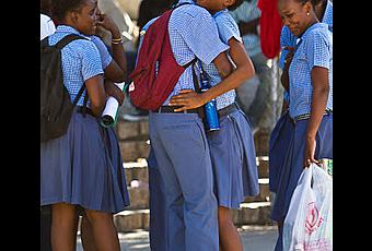 Et ceux qui disent qui ne se passent rien !! Les langues sales !! Sérieusement, la critique est une maladie contagieuse pour les observateurs de la scène haïtienne. À ce petit jeu, les haïtiens ne sont pas moins virulents que les blancs. On a quand même vu des changements significatifs dans les dernières semaines. Rien de vraiment spectaculaire ou fondamental, mais qui au plan de la perception marque un changement de ton. Le parc de la Place Saint-Pierre a enfin été complètement libéré de ses tentes. Ça fait déjà quelques semaines, mais depuis deux jours, la grande nouvelle, est que le citadin s’est un peu plus rapproprié l’espace. On y a organisé une foire où les artisans viennent vendent leurs produits pour Noël. À des prix en plus, les marchands d’artisanat pour étrangers sont sûrement un peu gênés… La même crèche vendue dans une galerie pour deux fois le prix ! Il faut dire que la foire vise les haïtiens. On a donc étiré l’heure du dîner pour aller y fouiner. Un vrai petit plaisir de suer à grosse goûte entre les artisans pendant que la musique de Noël adaptée au rythme du kompa fait danser les haïtiens. Comme ces écoliers venus perdre leur temps après la classe, ou pendant peut-être.