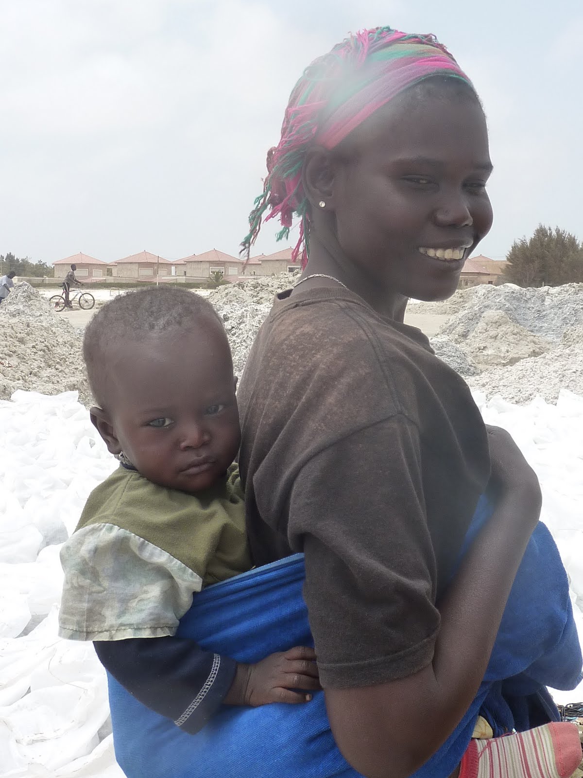 Sans doute la photo que je préfère parmi toutes celles que j'ai prise lors de mon mois dakarois.Je l'ai prise à la demande de la maman près du lac rose (35 km de Dakar) où les hommes récoltent le sel et les femmes vendent des babioles aux touristes. Là encore, j'ai dû vous parler de cet endroit vers mai ou juin de cette année.