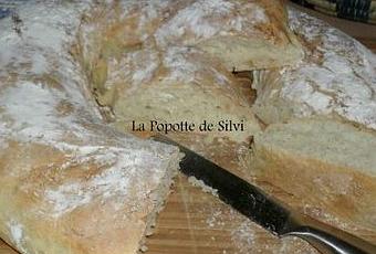 Saupoudrez de farine et faites cuire dans un four préchauffé à 220 °C (thermostat 7) pendant 20 à 25 mn, jusqu’à ce que le pain soit bien gonflé et qu’il sonne creux. S’il se colore trop, couvrez-le de papier d’aluminium après 15mn de cuisson.