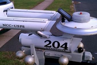 Voici une boîte aux lettres fait maison reprenant les formes de l’Enterprise de Star Trek. À noter que celle-ci ne se contente pas uniquement de recevoir vos lettres puisqu’elle est aussi capable de s’éclairer grâce à l’énergie du soleil.