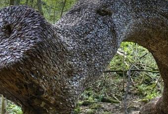 Vous connaissez tous la coutume des fontaines à monnaie, sur le modèle de la célèbre fontaine de Trevi à Rome. Mais vous ne connaissez sans doute pas cet étrange phénomène que l’on rencontre dans plusieurs forêts autour de Cumbria et Portmeirion dans le nord de l’Angleterre et du Pays de Galle : les arbres à monnaie. Ces arbres sont le résultat d’innombrables dépôts de pièces de monnaie, faits par les promeneurs depuis des siècles. Les pièces sont méticuleusement enfoncées dans les rides des écorces des troncs et des souches, puis martelées et recourbées jusqu’à former une véritable seconde écorce écailleuse. Mais pourquoi une telle pratique ? Cette pratique remonterait au début des années 1700 en Ecosse, où les personnes atteintes d’une maladie croyaient pouvoir soulager leur mal en insérant des pièces de monnaie dans les arbres. Au fil du temps, cette croyance mystico-religieuse est devenue une pratique culturelle pour les promeneurs qui passent dans la zones. Je pense qu’il reste pour certains une petite arrière-pensée superstitieuse, une sorte de forme résiduelle des croyances mystiques ancestrales. Un phénomène finalement très similaire aux fontaines à monnaie.
