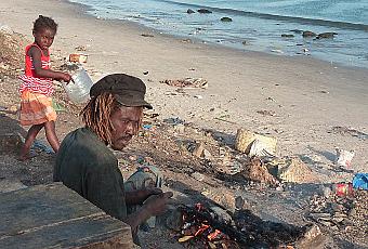 Après quelques ajustements et quelques "stop, ça y est", notre cuisto-rasta à la peau des doigts complètement cornée par la chaleur a fini par consentir à nous servir des moules non caoutchouteuses et collées à la coquille (et donc consommables à moins de 10%) mais encore juteuses et molles.