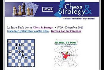 Lancée dans la touffeur de l'été 2009 en complément du site Chess & Strategy, cette lettre mensuelle gratuite d'informations échiquéennes en est maintenant à son 29e numéro. N'hésitez pas à la partager, nous nous ferons un plaisir de la faire parvenir à vos amis. Excellentes fêtes de fin d'année !
