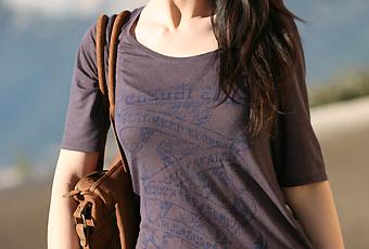 Ces petits 15°C m’ont donné une belle occasion d’étrenner mon t-shirt acheté chez Somewhere quelques jours avant de partir (psss, les stylistes de la marque si vous m’entendez, faites-nous une tonne de tees imprimés avec la même forme, ils sont terribles et la maille est géniale. Je mets une option sur tous les prochains ! ^^). J’aime beaucoup cette pièce, l’imprimé a des allures vintage et le grand col dévoile nonchalamment l’épaule, pour un rendu bien plus féminin qu’un t-shirt classique ! J’ai aussi pris mon grand sac bowling, qui supporte sans problème la bouteille d’eau, quelques bouquins et les plans pour prendre l’air toute la journée.