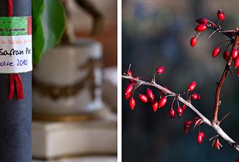 Pour la sauce gravlax15 cl d'huile de tournesol / 2 c. s. de vinaigre de Banuyls / 1 c. s. de miel / 2 c. s. de moutarde miel et romarin / 4 c/ s. d'aneth ciselé / Sel / Poivre
