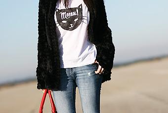 T-shirt Meeow Topshop – veste sans marque – slim H&M – boots Asos – sac Who’s The Queen Ikks (déjà vu ici)