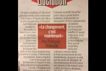 Ce matin, François Hollande, candidat du Parti socialiste, a réussi un tour de force : mettre la droite, la droitosphère et la gauche sceptique en émoi. La raison : un texte paru dans Libération intitulé : "le changement c'est maintenant" et lisible ici.