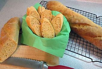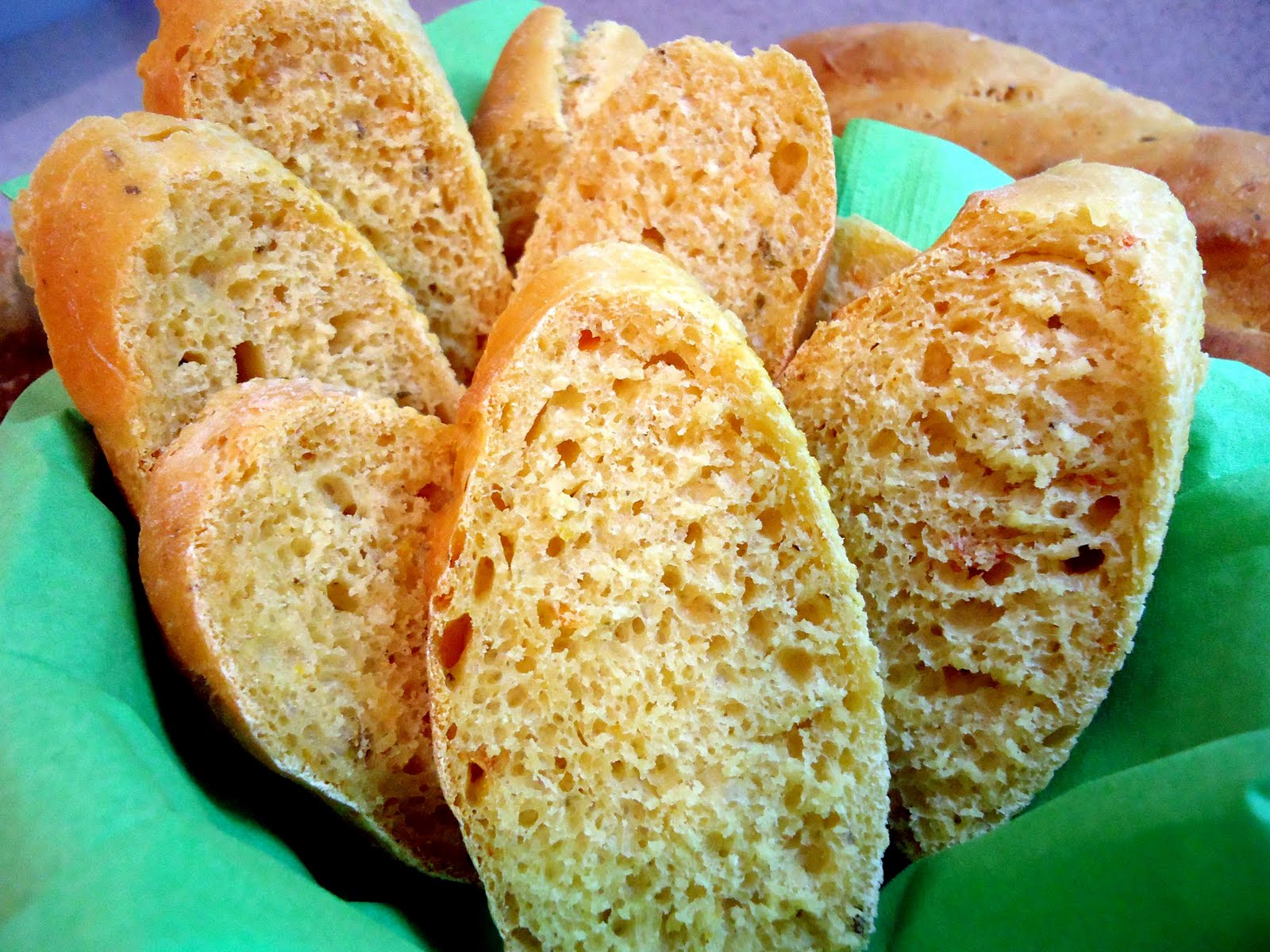 Pourquoi se contenter de baguettes blanches lorsqu'on peut avoir des baguettes aux saveurs variées ?Cette fois, j'ai parfumé ma pâte de base avec du pesto aux tomates séchées. Quelle merveille !! Non seulement j'obtient une baguette de pain à la jolie couleur orangée, mais c'est un parfum d'été qui se dégage de la mie encore tiède.
