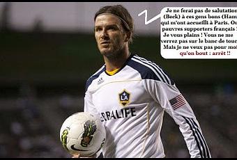 Beckham : Vous élaborez des phrases longues, vous aussi. J’attends la traduction. Ca y est !! Oui, en effet j’ai un pouvoir d’achat ! Mais je ne parle pas en mon nom mais au nom des petits consommateurs français. Les salaires n’augmentent pas, les impôts fleurissent partout, sur le tabac, les mutuelles, les boissons gazeuses ! Je ne cautionne pas cette politique de matraquage des petits revenus ! On doit le respect à des gens qui, potentiellement, peuvent venir vous voir jouer. Tous les Français de condition modeste sont des supporters en puissance ! Je ne pourrais vivre dans un pays qui étatise sa Sécurité Sociale, héritage de la résistance en 1945 et qui transforme des cotisations destinées aux organismes sociaux par des impôts indirects ! De plus, qui peut jurer que ces impôts n’iront pas dans la poche de l’Etat ? Ces ressources venant de la consommation des ménages devront être sérieusement contrôlées.Il faudra vérifier que les CAF et autres FNAL soient bien dotés de ces subsides qui échapperont de l’assiette qu’on appelle la masse salariale brute !
