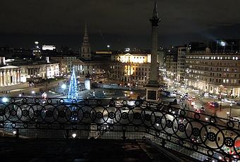 Le rooftop du trafalgar hotel est un endroit sympathique où boire un verre tout en ayant une vue imprenable sur Londres. Au loin, on aperçoit le London eye, le parlement, big ben mais on a surtout une vue privilégiée sur Trafalgar square, son sapin de Noël et le décompte des jours jusqu'à l'ouverture des jeux olympiques.