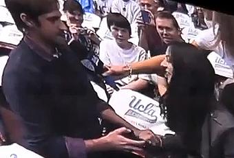 Pendant un match de basket, à la mi-temps, le “Mistletoe Cam” est le moment où des couples (ensemble ou pas ensemble) peuvent s’emballer devant la caméra au grand plaisir des spectateurs ! Parfois, des mecs décident de se jeter à l’eau et de demander en mariage leur petite amie devant des milliers de témoins ! Le mec, bague à la main, dit « veux-tu m’épouser ? » et la fille en pleurs répond généralement « oui ». Mais là, non. Un bon moment de déprime et de solitude !