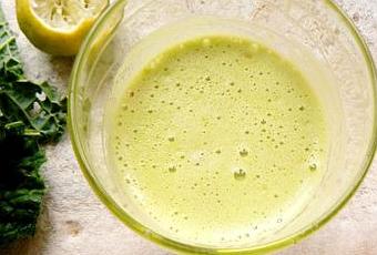 Centrifuger pommes et chou, le gingembre s'il est frais - à défaut passer au blender, le goût du chou peut être plus prononcé, ajouter alors un quartier de pommes. Compléter par le jus de citron et le baccharis.
