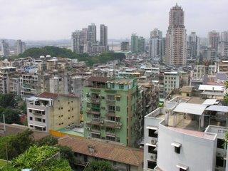 Macao a longtemps résonné en moi de cette manière... Reputé «Enfer du jeu», ce petit coin d'occident perdu au fin fond de la chine promettait tripots enfumés et rythme endiablé , moiteur tropicale et ambiance coloniale, ruelles sombres et mystérieuses, foule grouillante autour des vieux édifices des conquistadors portugais.... Comme souvent dans ces cas la, la réalité s’avère décevante par rapport a la fiction. Impossible, pour elle, de concurrencer une telle machine a rêves. L’arrivée par bateau calme vite les ardeurs de découvertes et tous les rêves greffés à la destination : bonjour l’urbanisation anarchique, les buildings champignons et les hôtels clinquant qui fleurissent sur la côte, dans une frénésie immobilière que ne dément pas les chantiers que l’on aperçoit dès le pieds posé a terre. Ca sent l’urbanisation anarchique, ici, sans qu’aucune limite ne semble avoir été fixée au départ.