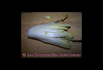 J'entaille, à plusieurs reprises, mon endive sur toute la longueur, comme vous le voyez sur la photo.
