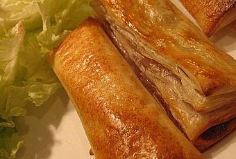 Des feuilletés à la sobrassada et des croustillants de feuille de brick au fromage de brebis ! Le tout avec une bonne salade : les yeux fermés, nous étions encore à Font Romeu !