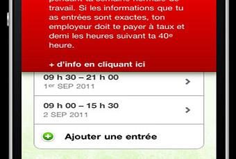 En 2010, 58 % des jeunes salariés de 15 à 24 ans ont été victimes d’au moins une infraction à la Loi sur les normes du travail. Parmi ces infractions, on retrouve bien souvent le cas des heures de travail non payées par l’employeur. Afin d’aider ces jeunes à inscrire les heures travaillées pour qu’elles leur soient toutes payées, la Commission des normes du travail du Québec a développé l’application mobile maPaye.
