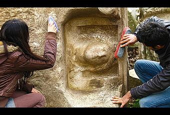 Le buste, de 1.5 mètres de haut et de 2 mètres de large, porte des représentations caractéristiques de têtes de taureaux et de la figure d'une déesse.