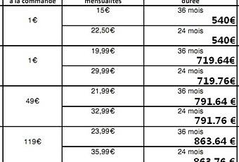 Soit seulement 3€ petit Euros plus cher que l’offre de Free, on est clairement loin de la promesse de Free de casser les prix du marché par deux!