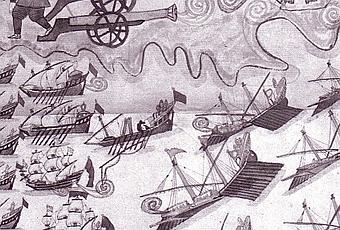 Les forces turques à l'assaut de la forteresse de Ténédos, défendue par les Vénitiens au cours de la guerre de Candie