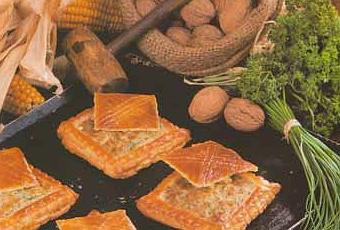 Plus raffinés que les croûtes ou les préparations à base de pâte brisée, ces feuilletés sont garnis d’un mélange de fromage, de fines herbes et de noix.