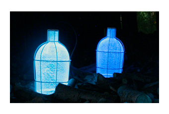 Si vous avez un enfant en bas âge, il vous a peut-être déjà demandé de laisser la lumière allumée la nuit, pour conjurer son angoisse de l’obscurité. Quelle gaspillage d’énergie ! Heureusement, deux diplômés de la Design Academy d’Eindhoven en 2009, Gionata Gatto et Mike Thompson, ont eu l’idée de piéger des pigments photoluminescents entre deux couches de verre de Murano, utilisé pour réaliser la forme de leurs luminaires.