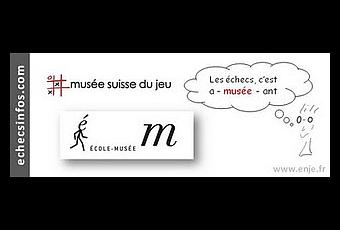 Le musée Suisse du Jeu (Tour de Peilz, au bord du Léman) présente en exposition permanente le jeu d’échecs.La légende de Sissa sert de support à une réflexion sur la croissance exponentielle, et est proposée aux écoles pour animer des cours après la visite du Musée.Ce qui est exceptionnel, c’est l’existence, au sein du Musée, d’un Club d’échecs junior.[ 6 à 16 ans | mercredi de 15h30 à 17h00 ]Voir :Musée du Jeu - accueilMusée du Jeu - Club d'échecs juniorMusée du Jeu - Fiche didactique (PDF)