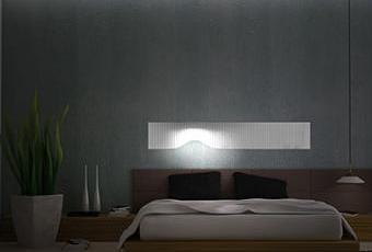 Une création à la fois futuriste et astucieuse, utilisant la technologie LED couplée à des capteurs tactiles. Sa destination première, se placer au-dessus de votre lit servant de source lumineuse de chevet sur laquelle vous pourrez choisir l’intensité et la zone à éclairer.