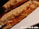 Même si je n'ai plus de longs après-midi à passer en cuisine, quand je vois une jolie recette sur le blog d'une amie, mon imagination se retrouve titillée et me voilà avec cette idée de carottes râpées à mettre dans un croque-monsieur. Et comme côté croque, le jambon-fromage est souvent détrôné comme ici ou là, mon inspiration a donné ça : une boite de thon, une grosse carotte, un peu de concentré de tomates, de tomme de brebis, un trait de vinaigre balsamique. Un croque très doux, fondant, les carottes râpées sont décidément très rapides à cuire, comme dans ce velouté lentilles corail - carottes aux épices.