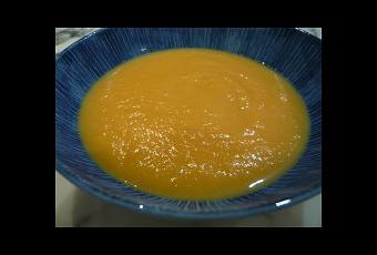 D'abord une soupe potiron-céleri. A la vue, elle est trompeuse et on peut s'attendre à goûter une toute douce soupe de potiron. Mais quand on la goûte, c'est une recette dont l'auteur (dans le "Bonheur de cuisiner") dit à juste titre qu'elle associe la douceur du potiron et le caractère du céleri. Ce caractère qui doit contribuer au fait qu'il soit souvent mal aimé, outre le fait qu'il réclame un bon couteau et un peu de temps pour l'éplucher/le découper...
