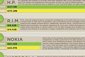 Cette infographie vous présente les revenus et dépenses des principales entreprises high tech présentes sur le marché des mobiles.
