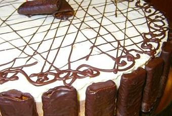 - Décorez selon vos gouts. Pour moi ce sera des crêpes dentelles au chocolat sur le pourtour et des très de chocolat fondu sur le dessus.