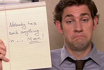 sans compter que The Office chute d'années en années). L'opening de l'épisode se déroule dans le silence. En effet, les employés se lancent pour défi de ne pas parler durant un temps record. La