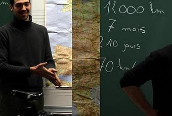 ,tout a été passé en revue,montré,expliqué, de la bassine pliante pour lessive et vaisselle à ordinateur et caméra pour rester en contact,en passant par la popote,le bâton bricolé (qui fait office de béquille pour le vélo,écarte danger,et servira peut-être à éloigner certains animaux errants)