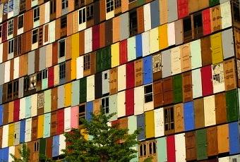 Né à Séoul en 1961, Jeong-hwa Choi est l’un des artistes Coréens les plus emblématiques. Ses domaines d’investigation sont vastes : musique, arts plastiques, architecture, design, mode, cinéma, édition etc. Jeong-hwa Choi puise son inspiration dans la culture populaire coréenne et les objets du quotidien, avec dans l’ensemble un regard assez critique la société coréenne. Choi Jeong-Hwa s’est récemment illustré en créant une installation publique de 10 étages composée de 1000 portes recyclées en Corée du Sud. Une façon d’utiliser les objets ordinaires de façon extraordinaire. Les portes sont de couleurs vives, ce qui donne à l’installation une identité visuelle forte, ce faisant particulièrement photogénique.