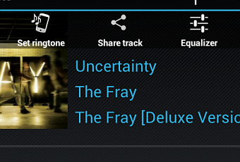 Parmi les fonctionnalités annoncées certaines fonctionnent déja comme la gestion des " shake " permettant de passer à la piste suivante, l'intégration de la section musique de l' Android Market, l'égaliseur graphique (en partie), les options pour les notifications de lecture, pour définir une musique comme sonneries et bien sur une gestion de thèmes personnalisables. Donc a priori tout est là et le résultat est plutôt réussi.