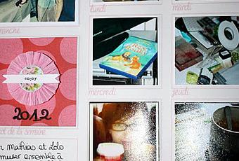 - Coté photos, là c'est galère. Pour moi qui ne suis pas une pro des logiciels de retouches avec système de calques c'est difficile d'optimiser. Aujourd'hui j'ai passé une bonne partie de la matinée à bidouiller vaguement Photofiltre sans grand succès. J'ai donc réalisé une mosaïque sur Picnik en triturant toutes les options pour pouvoir avoir un format de 4,5X4,5 ce qui implique de faire mon impression sur une semaine et demi..(8 photos),rien de pratique là, surtout qu'il faut refaire la manip' pour les photos 6,5X6,5...Il a fallu aussi faire quelques essais avec l'imprimante. Finalement il faut que je sélectionne dans le format A4, la page en 20X24. Puis découper le tout...