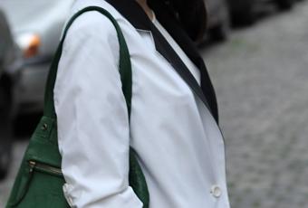 Et s'il y a bien un truc que j'ai retenu au cours de ces dernières années, c'est que le noir et blanc parfaitement coupés, quelque soit le prix du vêtement ou sa provenance garantissent une silhouette réussie. Et pour la petite touche de couleur, mon sac Billy vert sapin est l'accessoire idéal ! (Oui, la veste peut paraitre grande mais elle est à la bonne taille, c'est juste que c'est une veste dite boyfriend, un peu oversize ;)