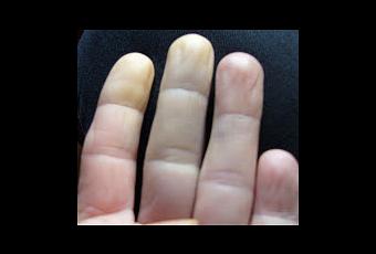 Depuis plusieurs années Monsieur Raynaud m'accompagne. Et plus les années passent, plus il prend de place dans ma vie... Le jour de l'Épiphanie (un lien avec le sang bleu des rois et reines ?) mon majeur gauche s'est cyanosé. Je me demande pourquoi celui là ? Serait-ce parce-qu'on le nomme le doigt "d'horreur" ?