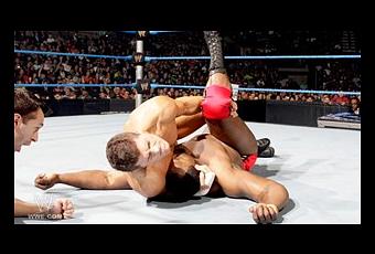 D’un « Cross Rhodes » le Champion parvient à expédier son adversaire au sol et s’adjuge la victoire dans ce combat