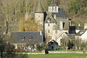 Château de Curières de Castelnau - Au cœur du village, sa haute silhouette attire le regard. la famille de Curières, l'une des plus illustres de Rouergue vivait en ces lieux. Leurs armoiries représentent un chien lévrier courant qui figurent sur le linteau de l'entrée principale. Le porche voutée permet d'accéder à la façade sud où l'on découvre la tour.