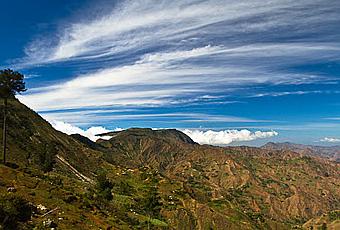 Ce matin, lors de la descente de l’escalier qui me mène de notre chambre à la cuisine, mes mollets ont rappelé leur existence. Bizarre comment on en arrive à oublier comment ce genre de muscle joue un rôle essentiel dans notre fonctionnement quotidien. Il suffit de les stimuler de manière inhabituelle pour qu’ils se crispent un peu. La randonnée a été un peu plus intense que difficile. Je sais que je ne suis pas le seul à avoir plus de difficulté lors de la descente que lors de la montée, mais l’analyse a été une fois de plus confirmée. Une première journée qui nous fait passer de Furcy et Séguin. Une longue montée, 4h30. Le soleil était présent mais pas trop agressant. Le vent refroidissait le moteur qui a réussi à garder une température normale tout au long de la traversée. De Séguin, on se rend à Peredo, juste avant Marigot. Une longue descente qui prend probablement 6 heures, à moins que l’on décide de tricher un peu vers la fin (pour les dernières 30 minutes) en assoyant ses fesses (question de reposer les genoux et de limiter l’impact des ampoules) sur une moto-taxi. Ce que nous avons fait. De Peredo, on s’est engouffré dans un tap-tap pour Jacmel où le chauffeur nous attendait, coincé qu’il a été dans un blokus infernal de quelques heures sur la route entre PAP et Jacmel. Un camion a fait un embardé et a bloquer complètement la route … Le sentier est une route plus vraiment carrossable que des centaines d’haïtiennes empruntent à pied pour aller vendre ce qu’elles ont cultivé de légumes ou de fruits. Le principal point de sortie serait le marché de Kenscoff. On croise donc ces femmes qui, en gougounne le plus souvent (des tong pour les français) et avec un grand panier en équilibre sur la tête, nous dépassent allègrement. On croise aussi des petites maisonnettes ou des hameaux. Les enfants crient « blan blan blan … » et demandent quelque chose. Les parents cultivent un peu ce qu’ils peuvent dans un terrai hautement escarpé. Les paysages sont aussi beaux que désolants, désolants par la nudité des montagnes. Le 2% de couverture végétale prends tout son sens. Un vrai plaisir qui laisse autant d’image dans la tête que de raideurs dans les mollets. C’est une autre façon de sortir de l’enfer de Port-au-Prince, et très certainement une belle façon de découvrir de nouvelles dimensions de ce pays et de ce peuple. À Séguin, tout le monde connait Winnie qui se bat pour donner un peu de sens écologique à ce bout du monde en développant entre autres des activités écotouristiques. Dans la petite auberge où il nous accueille très bien, il y avait ce couple de Boston qui venait de faire la même route que nous sur le dos de chevaux. Il parle même d'escalade et je pense qu'effectivement, des grimpeurs y trouveraient let compte. C’est Winnie qui offre le service et tout ça profite à sa fondation (visiter le site).