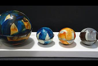 3. la sphère en chocolat blanc brossée de poudre irisée, pour un effet de perle