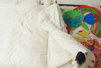 Un lit dont les couvertures sont des pages à tourner avec une nouvelle histoire à chaque fois; des histoires dans lesquelles on peut sauter à pieds joints, c’est l’idée sortie de la tête de l’artiste Yusuke Suzuki. Parce qu’un lit n’est pas seulement fait pour dormir !