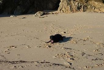 Alors là c'est le top ! Pouvoir courir sur la plage quand il n'y a personne, le pied ! Non, la patte !!! Là je pouvais dire que c'était MA plage, à moi tout seul ! Je me suis défoulé à fond les grelots ! J'ai même réussi à aller jusqu'à la mer, mais ma maîtresse m'a rappelé avant que je n'entre dans l'eau. C'est dommage, j'aime bien prendre des bains de pattes !