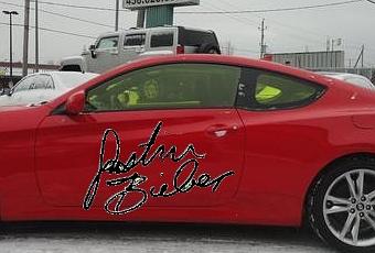 Durant la période des Fêtes, Justin Bieber s'est rendu au concessionnaire et a apposé sa griffe sur une Hyundai Genesis Coupe 2.0 Turbo rouge de 2012.