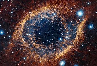 Probablement l’une des plus proches nébuleuse planétaire de la Terre (entre 650 et 700 années-lumière), Helix ou NGC 7293 (il n’est pas rare qu’elle soit aussi surnommée “l’oeil de Dieu”) est aussi l’une des plus belles et l’une des plus grandes connue : 2,5 années-lumière de diamètre (voire plus) ! Observable dans la constellation du Verseau, l’orbe gigantesque occupe dans le ciel l’équivalent d’une demi Pleine Lune (soit 16 minutes d’arc).