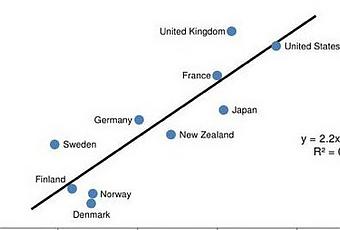 On lit ce graphique de la manière suivante plus un pays est en haut, plus ses inégalités sont grandes, plus il est à droite plus la mobilité intergénérationnelle y est faible, plus les revenus des enfants dépendent de ceux des parents. Que les inégalités soient très fortes aux Etats-Unis n'est pas une information nouvelle, que la mobilité sociale y soit aussi faible est, par contre, moins connu. Mais oublions un instant les Etats-Unis et regardons l'Europe. On trouve en bas à gauche, les pays du Nord : faible inégalité et plus grande mobilité et en haut à droite, pas très loin des Etats-Unis, la Grande-Bretagne et la France. Nous avons des efforts considérables à faire tant pour réduire les inégalités que pour aider la mobilité sociale.