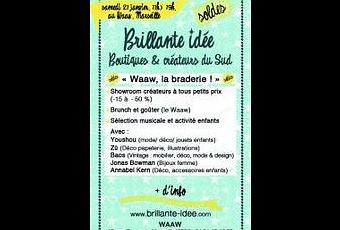 Première édition, du nouveau concept qui regroupe plein des boutiques insolites et des créateurs du sud ... voici la braderie de BRILLANTE IDEE ! Une journée à partager au Waaw entre "Brunch & Goûter", sélection musicale pour les enfants avec L'AMATEUR aux platines, ateliers créatifs pour les kids et show-room des créateurs à petit prix (jusqu'à -50%). Invités de cette Brillante Idée hors la toile ... les créateurs JONAS BOWMAN (Bijoux artistiques or et argent femmes), ZU (coussins et déco onirique pour petits et grands), ANNABEL KERN (doudous enfants et coussins gourmands) et l'incontournable boutique en ligne marseillaise (tête chercheuse d'objets insolites et d'inspiration vintage) YOUSHOU (coup de coeur de miss chutmonsecret). La mobilier rétro vintage sera aussi au rendez-vous pour redécorer votre home sweet home avec une sélection pointue des nouvelles découvertes déco design de la boutique BAOS. Mais chuuuuut ... vous le savez c'est est notre secret de janvier !